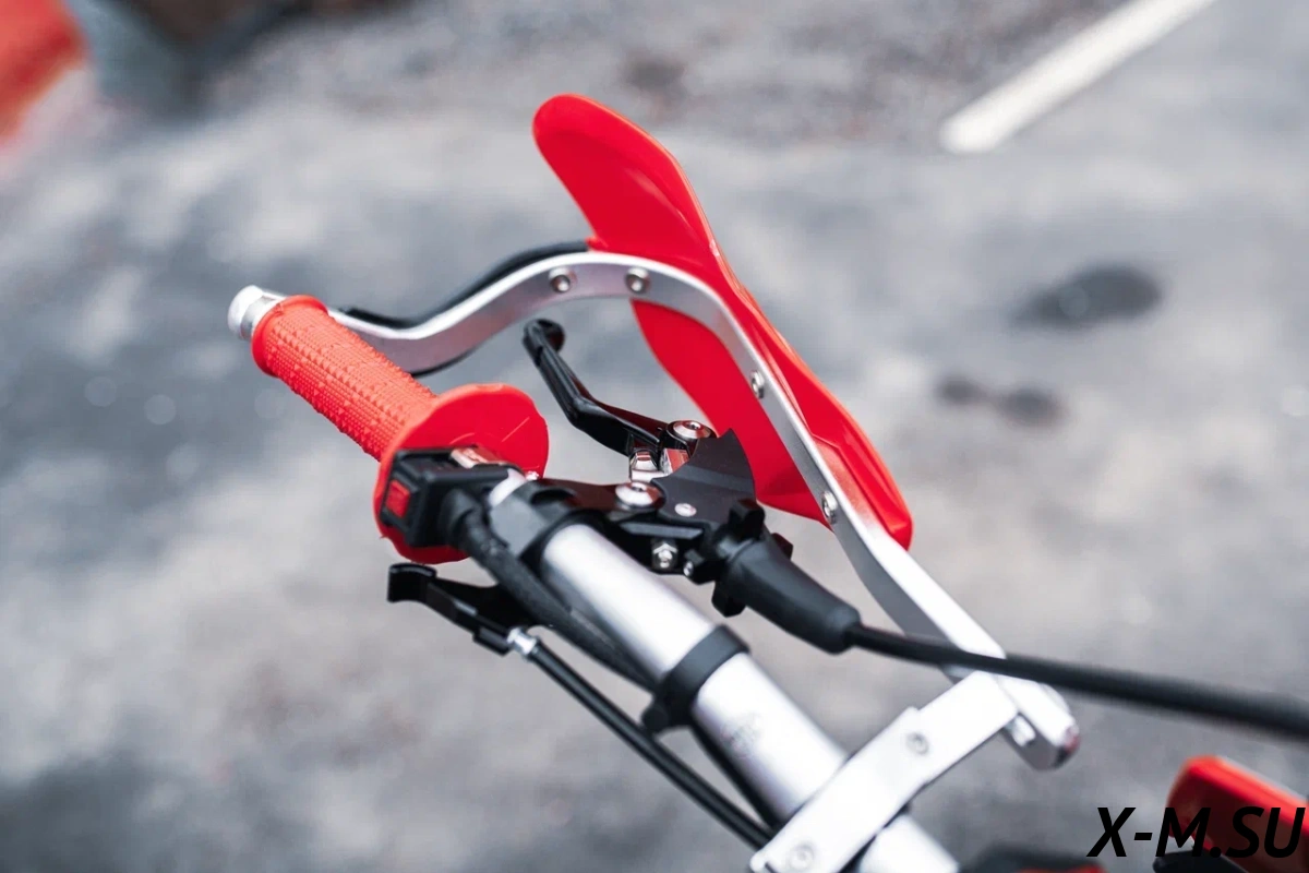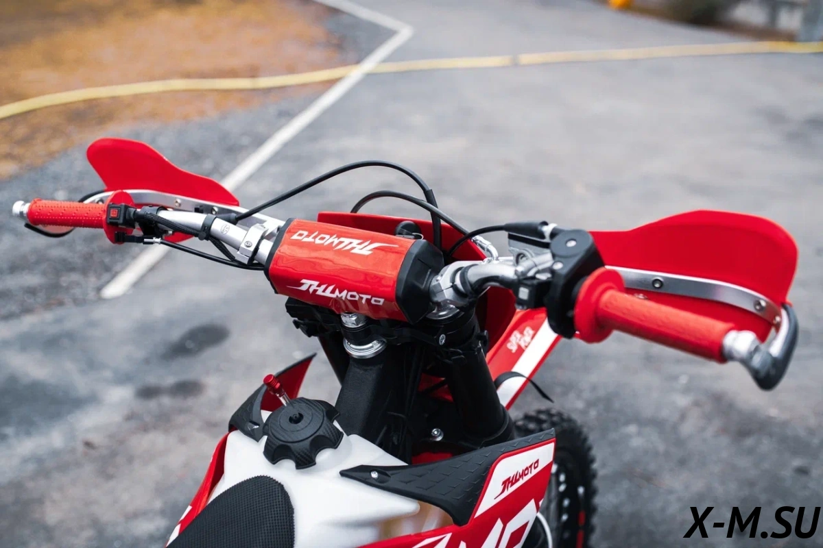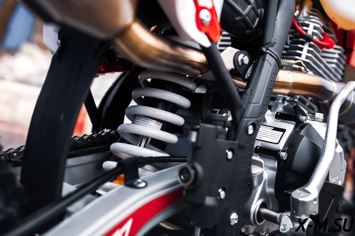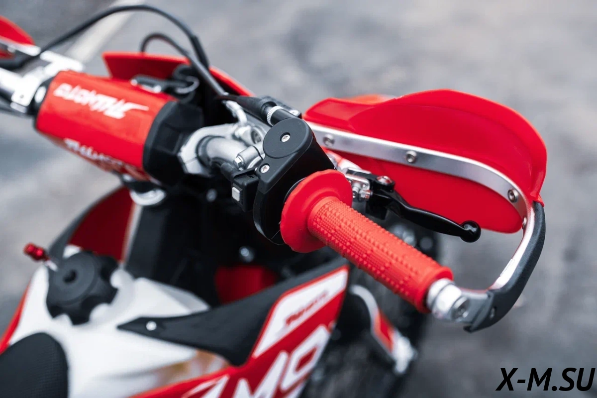 Пластик используется KTM2020 – очень прочный и распространенный, что делает его максимально возможным к обслуживанию. Руль IGP TwinWall 22/28 алюминиевый на всех моделях! Силиконовые грипсы Nibbi Racing – левая на замке, правая на короткоходной ручке газа Nibbi. Рычаги тормоза/сцепления – неломайки, из фрезерованного алюминия от CNC. Влагозащищенные кнопки старт/стоп на руле. Складной рычаг переключения передач, фрезерованный, из алюминия, от бренда PRO CAKEN. Лапка тормоза так же фрезерованная, алюминиевая. Самая легкая и прочная приводная цепь RK520MXZ уже установлена!